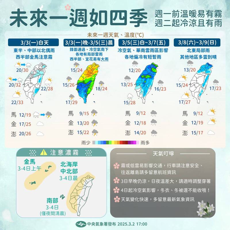 今日依舊溫暖偏熱 午後各地開始轉濕冷 - 生活 - 自由時報電子報