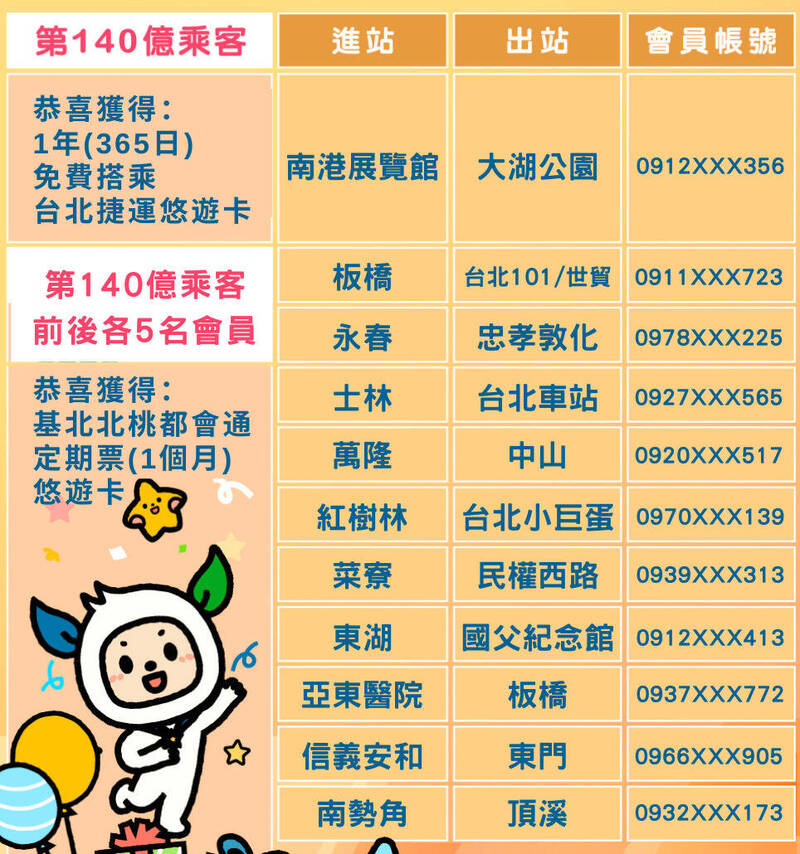 台北捷運第140億人次現身! 猜中路線1萬人免費吃茶葉蛋 - 生活 - 自由時報電子報