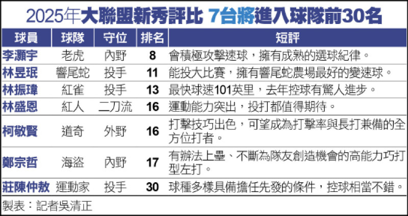 大聯盟潛力7台將 進台灣隊人才庫 - 自由體育