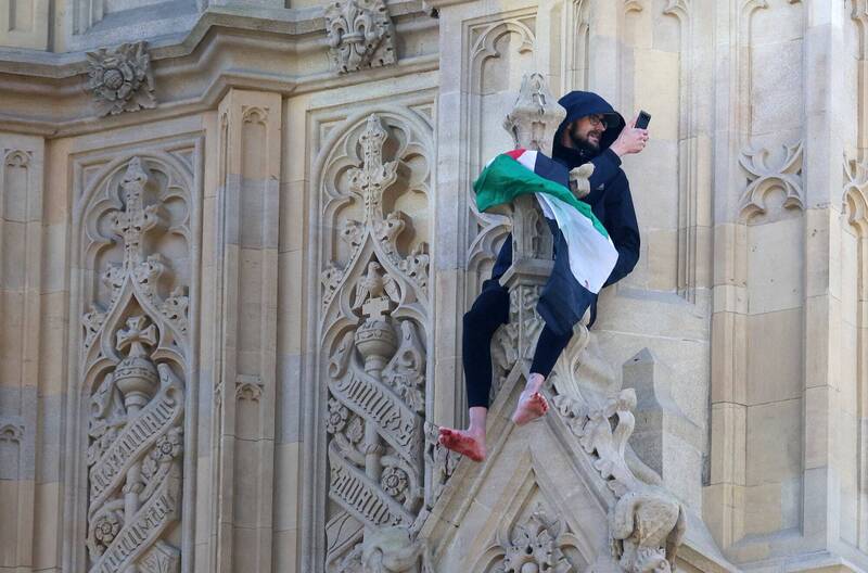 男子爬上倫敦大笨鐘高喊「解放巴勒斯坦」 與警僵持逾16小時 - 國際 - 自由時報電子報